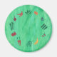 Pintura de frutas e vegetais sobre fundo verde misturado, impresso em ímãs. Um lembrete divertido para comer várias cores.