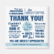 Obrigado, imã - a maneira perfeita de mostrar o seu apreço. Use-o como presente pessoal ou para mostrar seus obrigados aos seus funcionários, professores ou voluntários. O ímã quadrado tem espaço para você adicionar o logotipo comercial da sua própria empresa e o nome personalizado da organização.