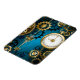 Turquesa, texturizada, fundo steampunk com latão e engrenagens douradas, chave prateada e relógio. Estilo Steampunk.
