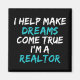 Are you a real estate agent or broker ? If so, this funny real estate magnet "I help make dreams come true, I'm a realtor" is perfect for you. Realtor magnets are great for " businesses - advertising, customer giveaways * personal use - home or office * gifts - birthdays, christmas * home sale celebrations * open house showings. Please scroll down to view other real estate products you may enjoy.