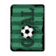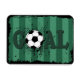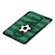 Design de futebol em quadro preto em tons de cinza sobre fundo listrado verde