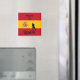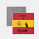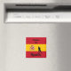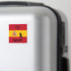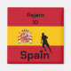 Jogador de futebol usando ponto como bola, bandeira espanhola no fundo. Personalizável: altere o número e o nome da instalação para o seu