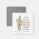 Um ímã de aspas inspiracional retrata um simples design verde-aquarela. Apresenta a Bíblia Verse Galatianos 5:22-23, "Mas a fruta do Espírito é amor, alegria, paz, paciência, bondade, bondade, fidelidade, gentileza e autocontrole. Contra essas coisas não há lei."*