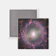 Galáxia espiral NGC 3351 Gás molecular denso é mostrado em magenta. Jovens estrelas massivas iluminam seus arredores em vermelho. As faixas de poeira são destacadas em branco e estrelas recém-formadas em azul.