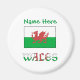 Íman redondo personalizado com a bandeira galesa, com a palavra WALES por baixo. Um lugar para o seu nome, em letras verdes, fornece a capacidade de criar um toque personalizado. Ou, crie um presente personalizado adicionando o nome de outra pessoa. Excelente estocado ou presente de Hanukkah. Divertido de ir a grupos de viagem, clubes e reuniões familiares. Faz um ótimo favor a uma festa também.