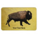 Uma pintura digital do bison americano, ou búfalo, sobreposta a uma imagem de fundo em couro bronzeado. Personalize adicionando seu próprio texto. O bison (Bison bison), o maior mamífero terrestre da América do Norte, é considerado uma espécie-chave: já vagaram pelo continente em rebanhos de excelente, e sua pressão de pastagem ajudou a moldar a ecologia das planícies Excelentes. Foram descritas duas subespécies ou ecótipos: a bisão (bison bison bison), de tamanho menor e com uma corcova mais arredondada, e a bisão de madeira (Bison bison athabascae) - a maior das duas e com uma corcova quadrada mais alta. O bison é um relativo recém-chegado à América do Norte, tendo se originado na Eurásia e migrado pelo estreito de Bering Há cerca de 10 mil anos substituiu o bisão-estepe (Bison priscus), um imigrante anterior que era muito maior. Pensa-se que a bisão de estepe se extinguiu devido à mudança do ecossistema e à pressão da caça na sequência do desenvolvimento do ponto de Clovis e da tecnologia conexa, e à melhoria das capacidades de caça. Nesse mesmo período, outras megafaunas desapareceram e foram substituídas até certo ponto por animais eurasiáticos imigrantes mais bem adaptados aos humanos predadores. O bisão existente, tecnicamente uma forma anã, foi um desses animais. Estima-se que houve 20-30 milhões de bisontes, também chamados de búfalos, em roaming na América do Norte. O seu alcance, em tempos, incluía aproximadamente um triângulo entre o Excelente Bear Lake, no extremo noroeste do Canadá, a sul, e os estados mexicanos de Durango e Nuevo León, e a leste, ao longo da fronteira ocidental das montanhas Appalachian. As primeiras vias férreas da América do Norte, com exceção dos caminhos obliterados de mastodonte ou de musko, foram os traços feitos por bison e veado na migração sazonal e entre os campos de alimentação e os lamaçados salinos. Muitas destas rotas, marteladas por inúmeros cascos instintivamente a seguir a bacias hidrográficas e as cristas de serras para evitar a lama de verão e as derivas de neve de inverno em lugares baixos, foram seguidas por Americanos nativos e foram inestimáveis para os exploradores. O termo "búfalo" pode ser considerado um erro para este animal, uma vez que está apenas distantemente relacionado com qualquer um dos "verdadeiros búfalos", o búfalo asiático e o búfalo africano. No entanto, "bison" é uma palavra grega que significa "animal parecido com boi", enquanto "búfalo" se originou com os caçadores franceses de peles que chamavam estes boeufs gigantes de bestas, que significam bois ou bullock - por isso ambos os nomes, "bison" e "búfalo", têm um significado semelhante. Em relação a esse animal, o termo "búfalo", que data de 1635, tem uma história muito mais longa do que o termo "bison", que foi registrado pela primeira vez em 1774. O bisão americano está mais relacionado ao bisão sábio ou europeu. A caça não regulamentada de bisão, que culminou em abates em massa nos anos 1870, reduziu a população para 1.091 em 1889. Hoje, cerca de 500.000 bisontes vivem na América do Norte. A maioria não é pura bisão, mas as preferencialmentes foram cruzadas com bovinos no passado e são criadas como gado em fazendas. Menos de 30.000 bisontes estão em manadas de conservação, e menos de 5.000 estão livres e livres de doenças. Hoje, bisontes estão ecologicamente extintos ao longo da maior parte de sua faixa histórica, exceto alguns parques nacionais e outras pequenas áreas de vida selvagem. O Parque Nacional de Yellowstone tem a maior população de bisão de planícies de roaming livre (cerca de 4.000), e o Parque Nacional de Buffalo de Madeira tem a maior população de bisão de madeira de roaming livre (cerca de 10.000). Um bison tem um casaco de inverno marrom, comprido e escuro, e um peso mais leve, casaco de verão marrom mais claro. O casaco de inverno é tão grosso e bem isolado que a neve pode cobrir as costas sem derreter. O bison masculino é ligeiramente maior que as mulheres. O bisonte das planícies pesa normalmente de 700 a 2.200 lbs. O maior touro selvagem já registrado pesava 2.800 lbs. Quando criado em cativeiro e cultivado para carne, o bisão pode crescer de forma não natural pesada e o maior bisonte semimdoméstico pesava 3.800 lbs. As cabeças e os quartos dianteiros são maciços, e ambos os sexos têm cornos curtos e curvos que podem crescer até 2 pés de comprimento, que usam para lutar pelo status dentro do rebanho e pela defesa. Bison são herbívoros, pastando nas gramíneas e bordas das pradarias norte-americanas. O seu calendário diário envolve períodos de duas horas de pastoreio, repouso e mastigação em cud, passando depois para um novo local para pastar novamente. Este movimento regular garante que bison raramente invade uma área. Bison frequentemente esfrega e rola no chão criando depressões ricas e como discos chamados wallows. Rolo de bisonte em wallow, wet or dry, cobrindo-se com pó ou lama. As explicações passadas e as hipóteses atuais sugeridas para o comportamento ao engolir incluem o comportamento ao aliciamento associado à desmoronamento, a interação homem-homem (normalmente o comportamento ao rubor), o comportamento social para a coesão do grupo, o comportamento ao brincar, o alivio da irritação cutânea devida a insetos picantes, a redução de carraças e piolhos, e a termorregulação. Ondas eram uma característica comum das planícies. No inverno, bison pode cavar por uma neve profunda com suas cabeças para alcançar a vegetação abaixo. Bison tem visão fraca, mas tem audição aguda e um excelente olfato. Bison pode alcançar velocidades de até 35 mph. Bison tem uma expectativa de vida de aproximadamente 15 anos na natureza e até 25 anos em cativeiro. Bison mate no final da primavera e no verão em áreas mais abertas. Durante o outono e o inverno, bisão tende a se reunir em mais áreas arborizadas