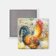 Um galo de galeria enquadrado por um bando de suas galinhas e feno em foco suave ao seu redor. Os amarelos e cinzentos gentis trazem o galo colorido para o centro da atenção, bem onde o pássaro orgulhoso gosta de estar. Este é um desenho mestiço em pasta de óleo e lápis colorido. Por Amanda Diehl, Designs Paxdomino
