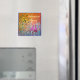 Galveston Texas - veleiro azul cavalgando as ondas do oceano com um sol amarelo e azul. A cena é colocada contra um céu metálico. Centrado sobre o navio à vela estão as palavras Galveston Texas em amarelo-sol aqua brilhante. Mostre o seu amor por Galveston e o Estado de Lone Star com este divertido ímã artístico.