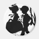 Uma cara e sua garota para um passeio, vestidos para impressionar, e pintando a cidade de preto.