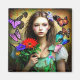 Imã Garota bonito com flores vermelhas e borboletas