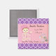 Uma menina criança bonita continua apresentando um bebê sentado vestido de rosa em um fundo rosa pastel com um aglomerado de rosas. No topo, em grandes letras decorativas, está o nome da criança, e abaixo e por baixo, também em letras decorativas, está a data e a hora de nascimento da criança. No centro estão os estádios de nascimento, comprimento e peso. Uma manutenção perfeita para a nova menina. Tudo isso em um plano de fundo rosa quatrefoil roxo.
