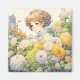 Imã Garota de Anime em Flores Amarelas