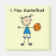 Um jogador de basquete de uma figura em uma camisa azul e um texto que diz "Eu jogo basquete" em Camisetas de basquete, capuzes, canecas, adesivos, botões de basquete, chaveiros e muito mais!