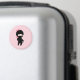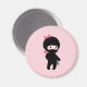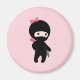Ninja de desenho animado bonito está vestida de preto, mas para um arco cor-de-rosa sobre sua máscara de cabeça. A espada tradicional japonesa katana pode ser vista colada sobre o ombro, também colorido cor-de-rosa.