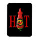 Letras HOT com o O feito com uma garrafa de molho de pimenta.