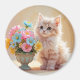 Tabby Kitten com Buquê de Pastel Flowers. Aqui Gatinho, Gatinho.