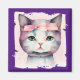 Um rosto bonito de gatinho com um arco rosa. Digitalmente criado em um estilo de aquarela. Perfeito para bebês, crianças e adultos em muitos produtos de moda! Personalize sua cor ou texto de fundo!