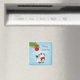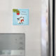 Um ímã engraçado e fofo com um tema de natal. Um gatinho malicioso e brincalhão. Ela está olhando uma decoração de árvores de natal pendurada de um galho de pinheiros se perguntando se ela deveria brincar com ela ou não. O texto diz Feliz Natal em uma fonte caprichosa. Colocado sobre um fundo azul com flocos de neve brancos.
