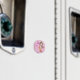 Tabuleiro de cinzas bonitas por gatinho em bolinhas roxas de moda, pintada pela artista Maryline Cazenave.