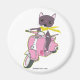 óculos de visto de gato inteligente roxo montando vespa rosa