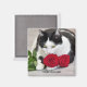 Imã Gato bonito com rosa vermelha
