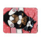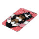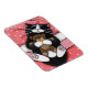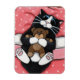 Íman flexível com uma pintura de gato preto e branco deitado numa cama agarrando um ursinho de pelúcia. Arte de Lisa Marie Robinson.