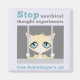Renderização de um gato atrás de bares com a piada: Pare de experimentos de pensamento antiético, gato de Free Schrodinger!