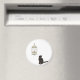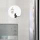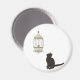 Um gráfico delicioso de uma silhueta de gato sentada debaixo de um pequeno pássaro na sua gaiola.