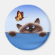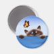 Feliz gato Himalaia no bolso olhando borboleta. Ilustração digital.