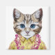 Este design apresenta um retrato de gato em uma camisa de verão e lei havaiana.