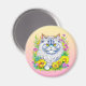 Imã Gato Persa em Flores Amarelas e Rosa
