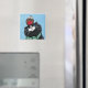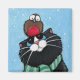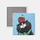 Imã de geladeira festiva de gato branco. Então o gato saiu para um passeio de inverno com seu amigo robin redbreast. Criada de uma pintura original de 2008 Lisa Marie Robinson