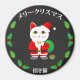 Gato sortudo vestido como Papais noeis com coroa de Natal. Um presente de Natal divertido e único trazendo boa sorte para você. "Feliz Natal", e "Maneki Neko (Gato Sortudo)" em japonês.