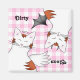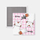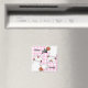 Meu desenho animado de um gato de mesa mostrando o lado angélico e o lado mau num fundo de padrão rosa de gingham. Mostrado aqui num ímã de máquina de lavar louça, limpa ou suja.