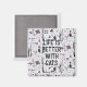 Um padrão bonito e divertido para o amante de gatos na sua vida. A design apresenta silhuetas de gato em preto, árvores, flores, pássaros e mariposas em estilo gráfico sobre fundo branco de platina. E o texto: A vida é melhor com os gatos que você pode mudar para adicionar seu próprio toque pessoal