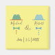 Pastel simples, moderno e colorido, ímã gay de casamento, com nomes e chapéus de desenho animado e gravatas arcos.