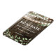 Ímã de geladeira de "save the date" para casamento rústico no campo, apresentando um fundo de barril de carvalho de celeiro escuro, luzes cintilantes, folhagem em aquarela elegante, seu monograma e texto de casamento moderno.
