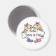As irmãs gêmeas, de cor rosa e lavanda, seguram uma nuvem que diz "Gêmeos... duas vezes como Divertidos!"