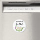 Duas ervilhas em uma cápsula, camisetas de primeiro aniversário, bolsas, fôlegos, ímãs e outras roupas de primeiro aniversário e presentes com bebês em uma vagem de ervilhas e texto que diz "É nosso primeiro aniversario!".