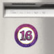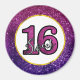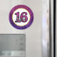 Elegante e rico doce 16 ímã. Concebidos com um fundo composto por pedras cintilantes brilhantes, cor-de-rosa e púrpura. Uma estrutura circular com uma borda faux-gold-foil colocada sobre cima com uma dentro gráfica de tipografia de tendência que diz doce 16.