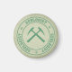 Geólogo - imã pergaminho colorido com letra verde colegial e martelos de rocha cruzados.