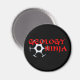 Geologia Ninja - humor científico - ímã negro com letras vermelhas e martelo rochoso lançando estrela.