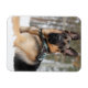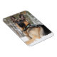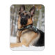 German shepherd posando na neve vestindo uma bandana colorida camoflaug.