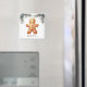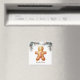 Um design festivo com um doce biscoito de gengibre com cor de rosa nas mãos e pés e sotaque branco. O rosto sorridente te desenhar. Um toque de folhas cor-de-rosa macio e pinheiras enfeite o topo do ímã. Simples diz "Eu adoro pão de gengibre" O ditado pode ser adaptado à sua preferência.