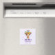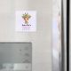 Um ímã com uma ilustração de aquarela esbranquiçada apresentando uma face de girafa vestindo uma bonito coroa floral primavera. Colorida e fofa.