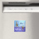 Animal Parade Holiday Giraffe está ficando festiva, toda esfolada em um chapéu vermelho de Papai Noel e uma coroa de férias da frente e atrás com planos de fundo azul texturizados. Marque você lavador de louça limpo (cabeças) ou sujo (caudas) e nunca mais fique confuso sobre seu ciclo de lavagem de louça.