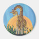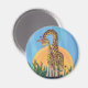 A arte de Girafa Mama e Bebê criada pela Imagine isso! Design sobre eletrônicos, acessórios e presentes é uma cena balbuciosa de uma mãe e girafa bebê em pé contra um sol de pôr e um céu azul texturizado se abanou junto com o pescoço da mãe enrolado sobre ela e seu bebê podem tocar bochechas em uma pose amorosa. Amantes de girafa de todas as idades vão adorar ter esta linda pintura de família de girafa como presente.