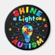 Frase inspiradora de "SHINE a Light on AUTISM" com uma lâmpada colorida como símbolo do Autismo para apoiar e defender a Consciência Autista.