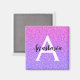 Glitter roxo, feminino e glam ombre, brilha o nome do monograma e o ímã inicial. Personalize com seu nome personalizado em preto e seu monograma inicial em branco. Você pode alterar a cor do texto, o estilo e o tamanho da fonte usando a opção personalizar.