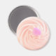 Uma espiral de glacé de rosa claro, tocada com um pequeno coração cor-de-rosa roxo. Muito delicado e delicioso.